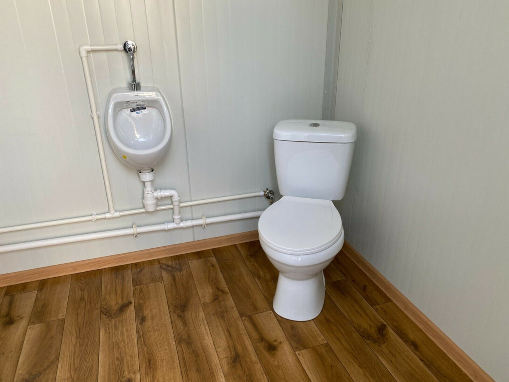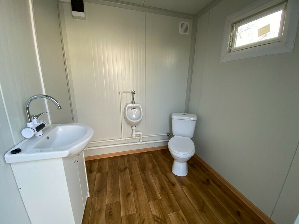 La cabina de WC de 2×2 m es la solución perfecta para quienes buscan comodidad, seguridad y funcionalidad en un solo espacio.– Aislamiento de 80 mm para un confort térmico óptimo.– Puerta exterior de acero galvanizado Hörmann, duradera y segura.– Instalación completa: urinario, electricidad CE, enchufes 230 V, iluminación y calefacción mural.– Suelos de PVC fáciles de limpiar.Además, con nuestra opción de entrega directa con descarga, podrá disfrutar de su cabina lista para usar desde el primer día.